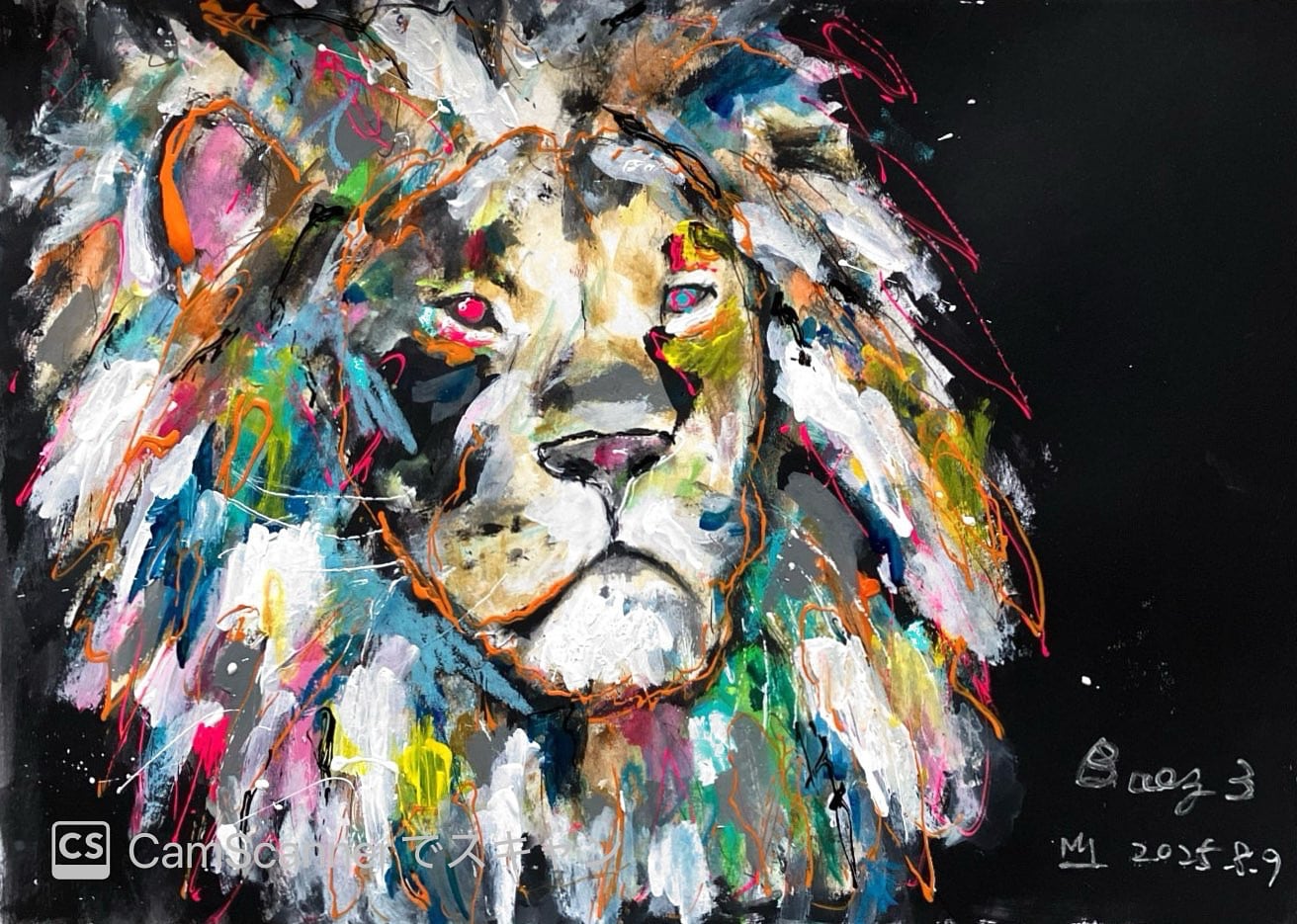 使用材料 アクリル絵の具、黒ジェッソ、ペンキ、クレパス、樹脂