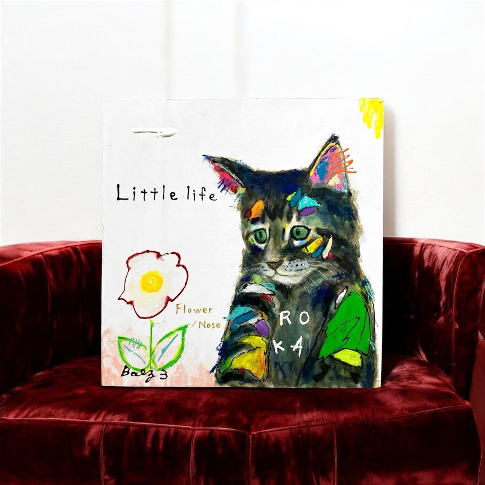 「小さな生き物を見ているのが好き。小さな命を観察中の猫」メインクーン 画