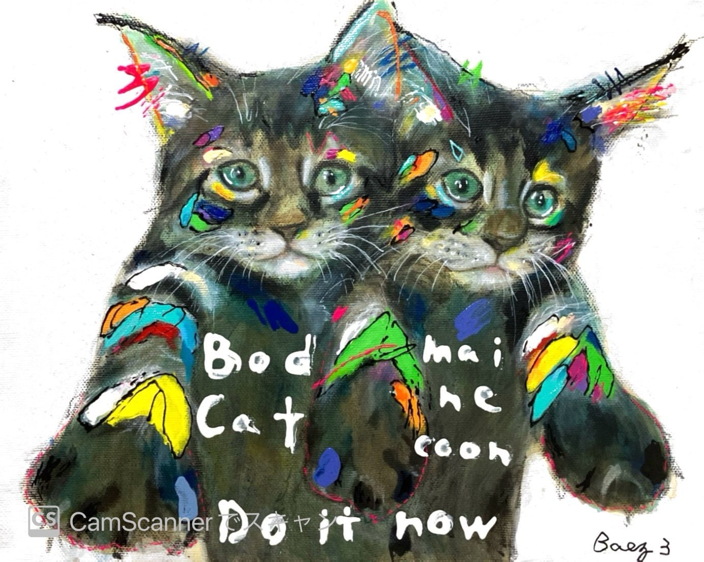 【使用材料】アクリル絵の具、アクリルスプレー、水彩色鉛筆、クレパス、ペンキ、フィキサチフ、モデリングペースト、樹脂絵の具、マーカー